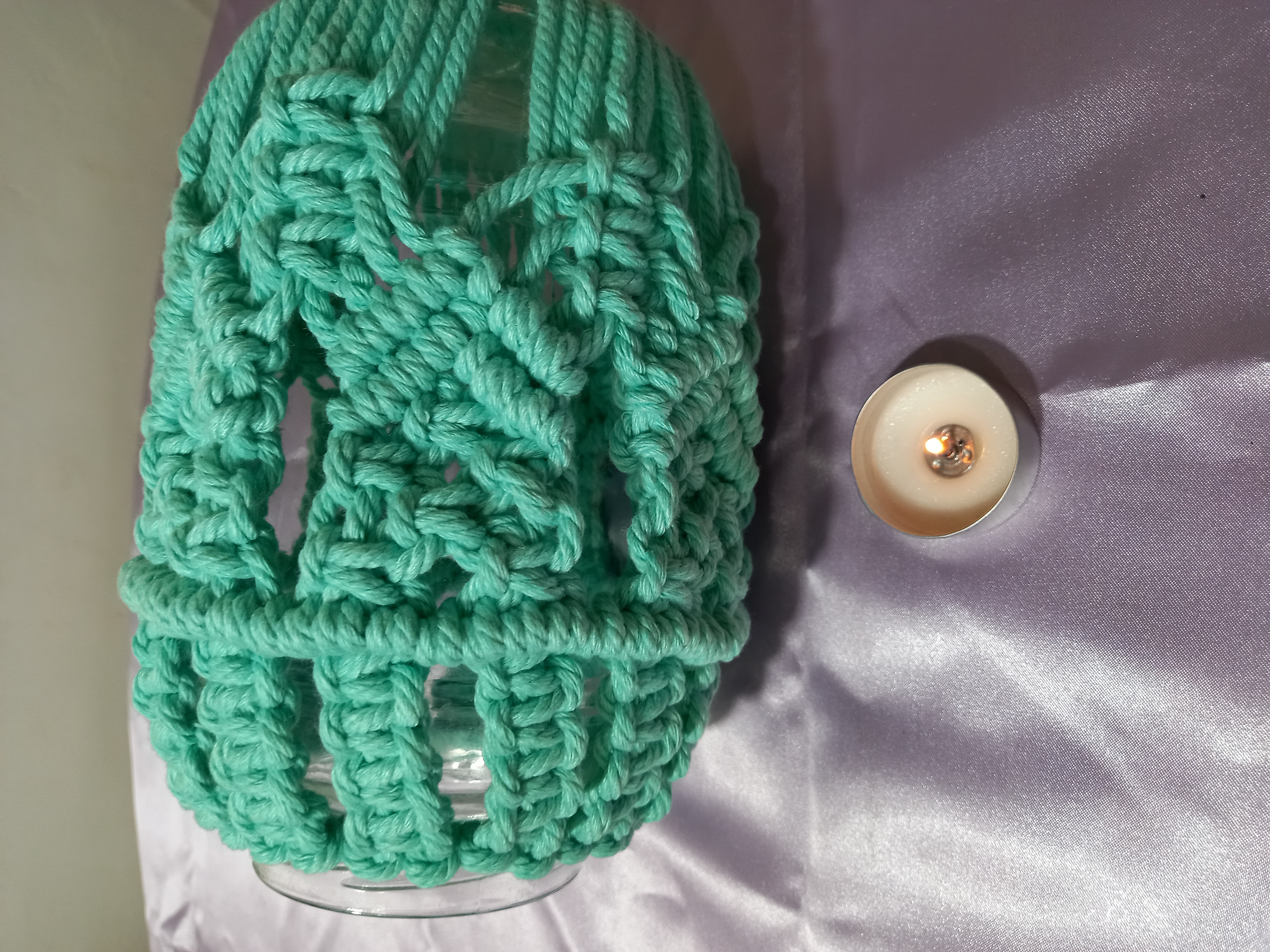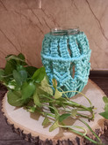 کاور شیشه ای بافته شده با نخ پنبه کتان به رنگ سبز آبی