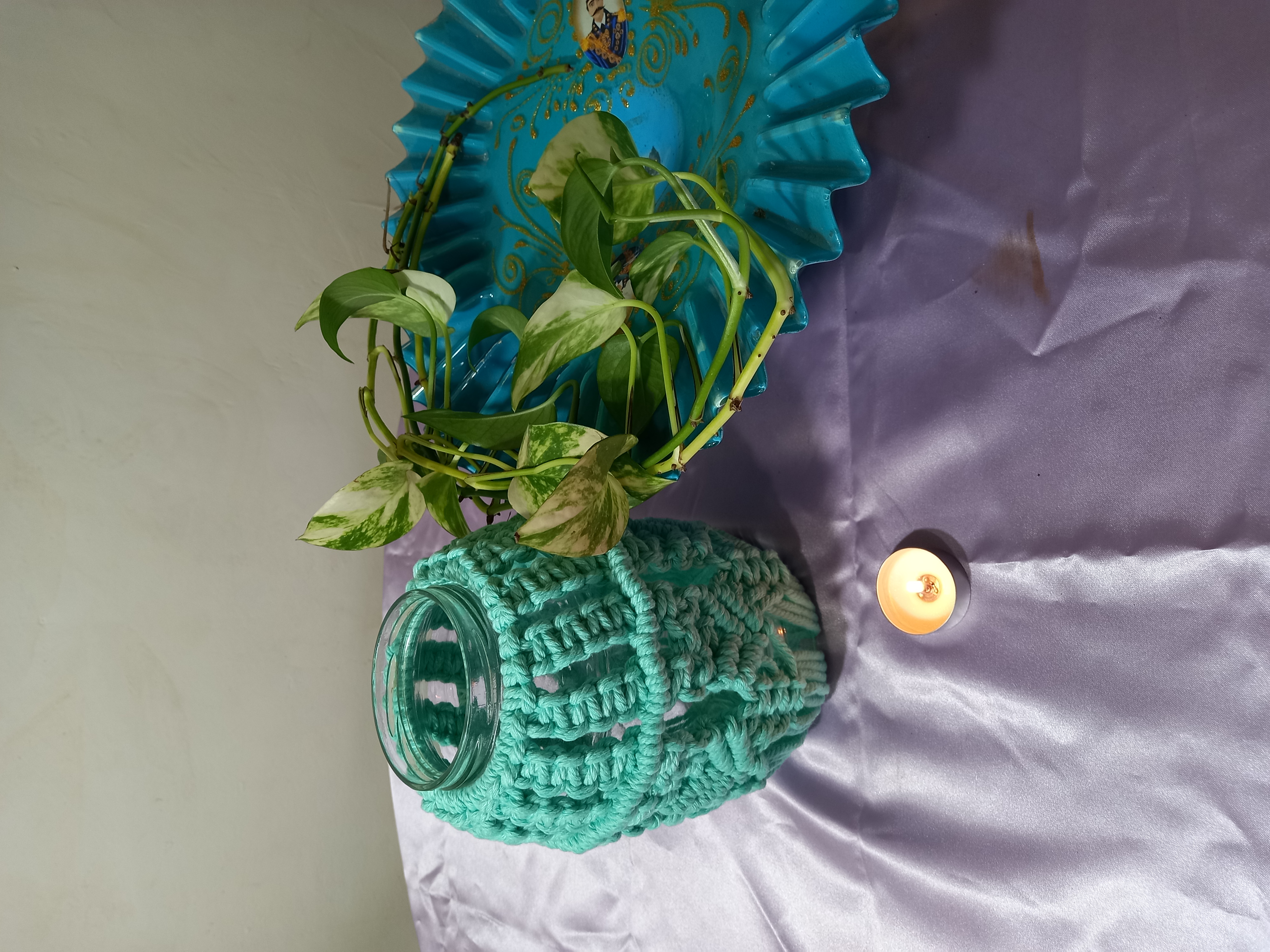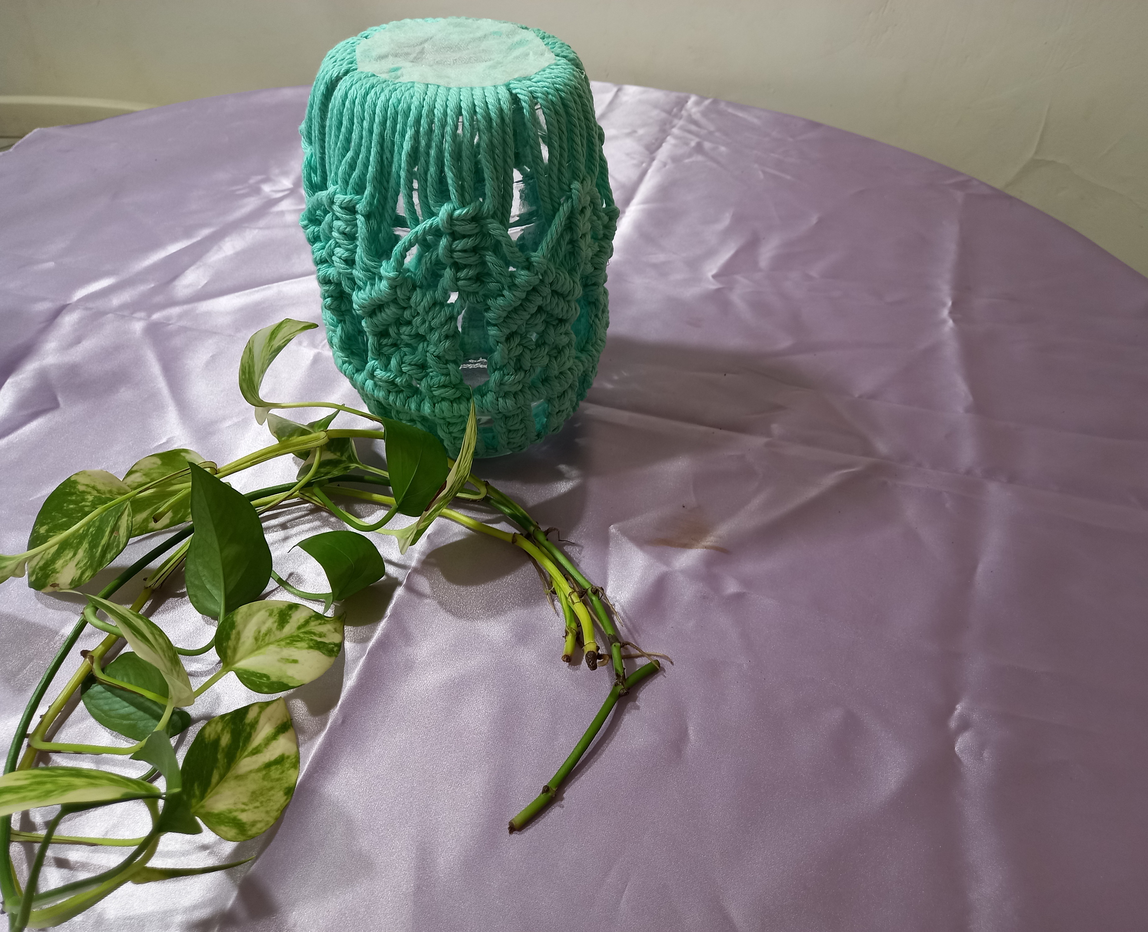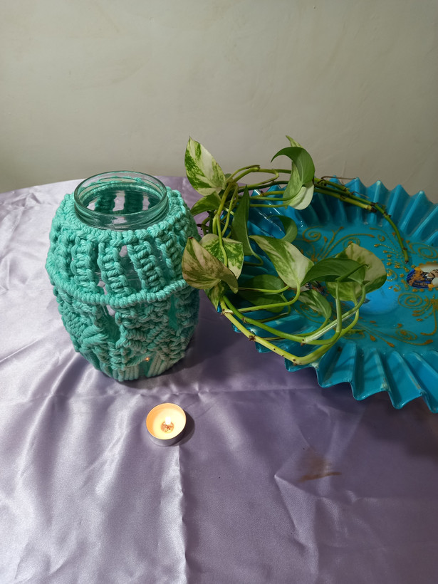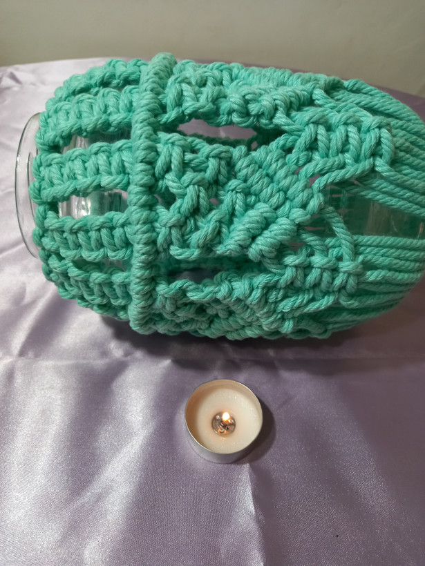 جاشمعی وجا گلدان مکرومه بافی نخ پنبه کتان