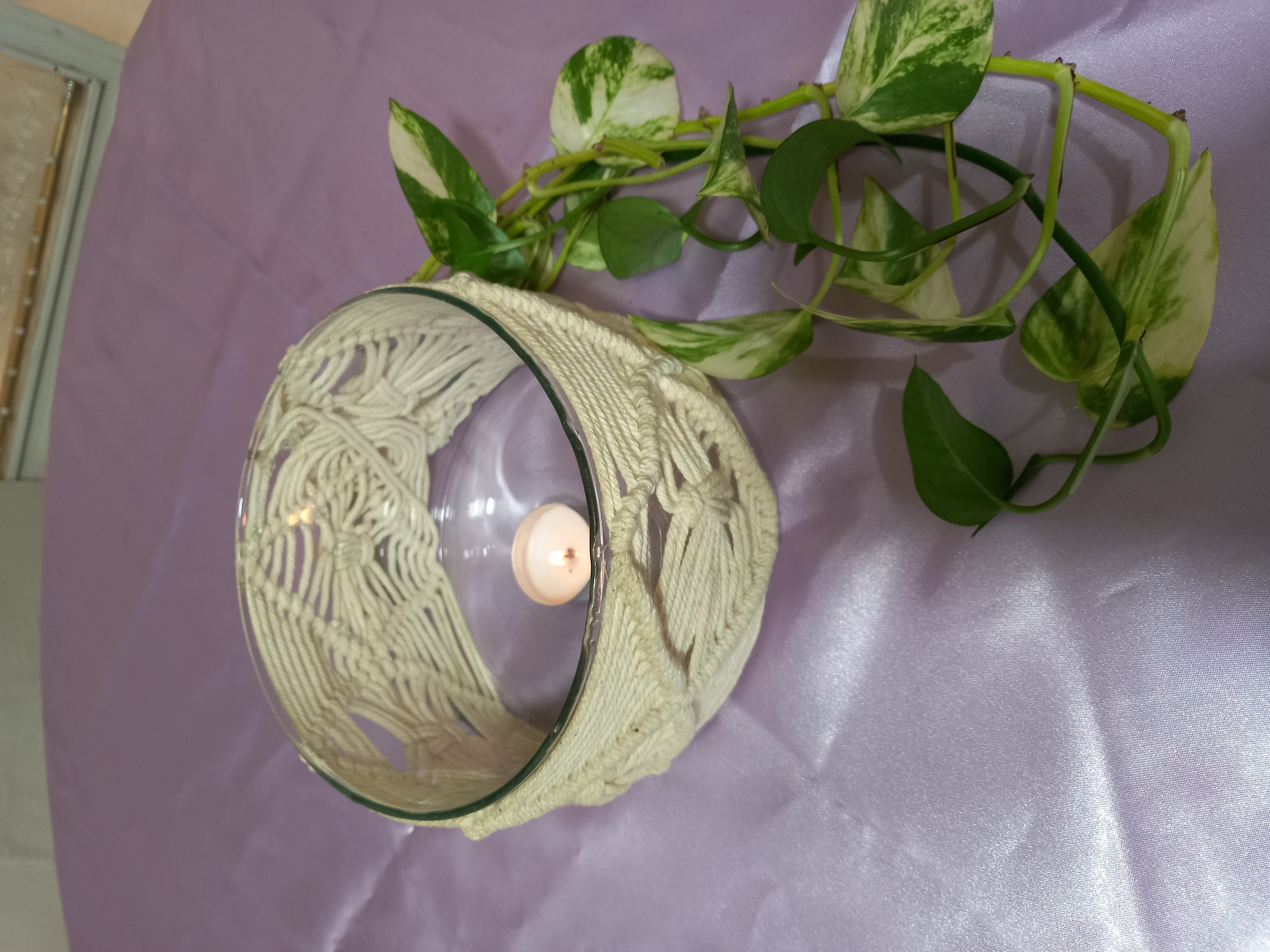 جا گلدونی وجاشمعی مکرومه نخ پنبه کتان